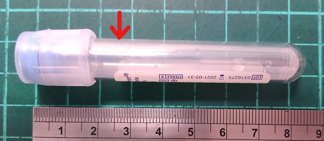 1. 血液採檢量須至刻線處。採血後倒轉試管3-4次。 |