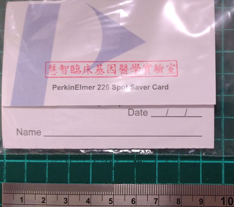 1. 採取新生兒腳跟血,製備乾血片。須確實填滿五格圓圈。 |